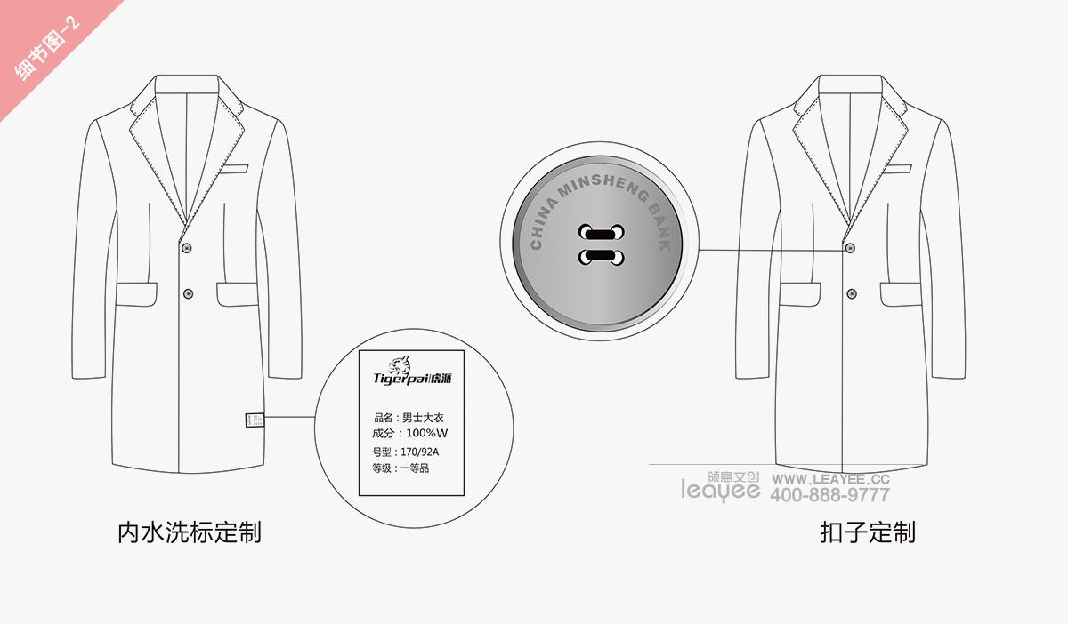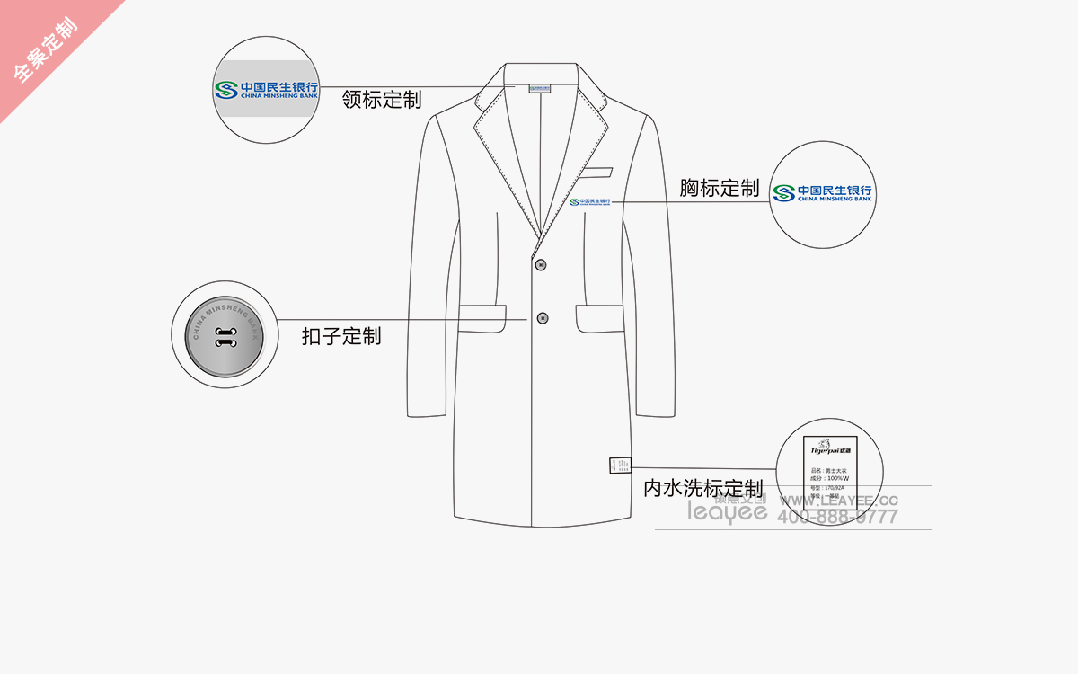设计方案: 民生银行的高速发展在国内受到公众和业界的高度关注和认同。民生银行为庆祝即将到来的20周年纪念,特意定制大衣一款,简洁稳重,款式新颖,防风御寒,是授予员工的最佳礼品,更能激励员工创佳绩。